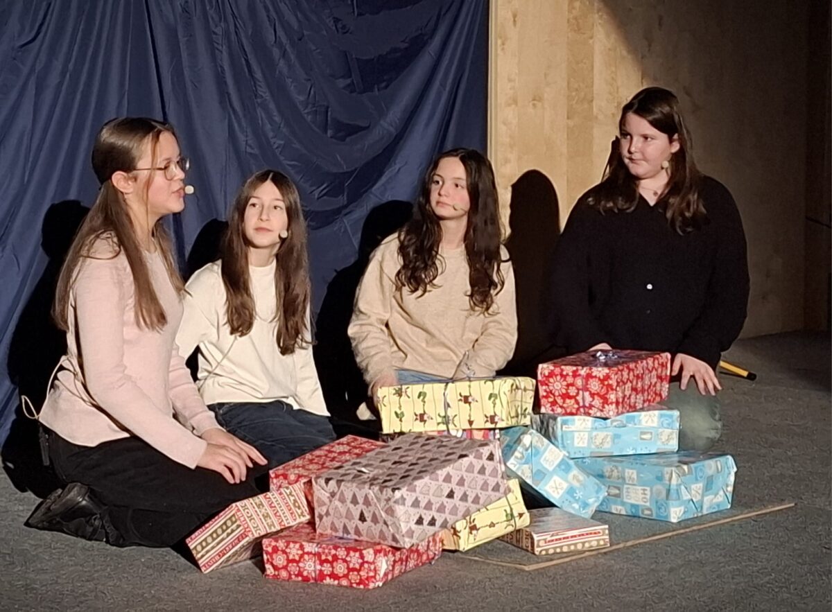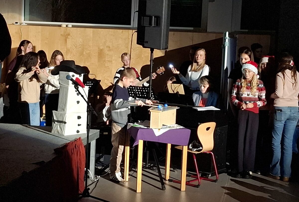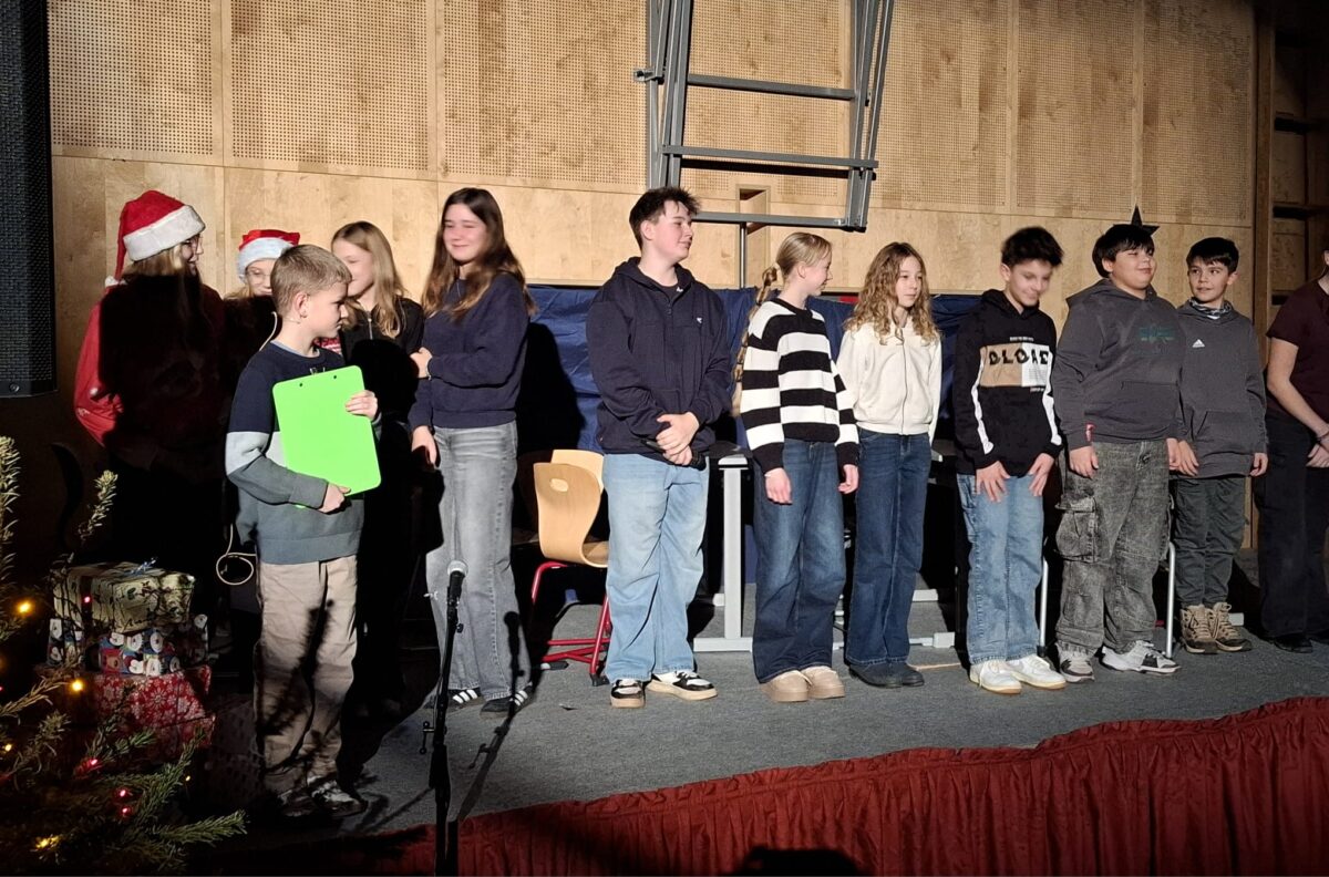 Volks- und Mittelschule hielten am 12. Dezember ihre gemeinsame Weihnachtsfeier ab. Beide Schulen präsentierten zahlreiche Beiträge, die dritte Klasse spielte ein englisches Stück, die vierte Klasse präsentierte ihre Krippen, während die Schauspielgruppe das Stück „Auf dem Weg nach Weihnachten“ zeigte.